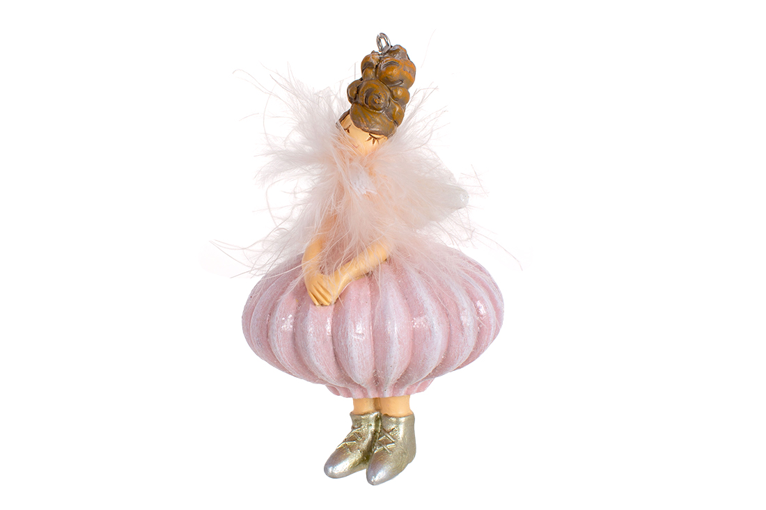 Декоративна підвісна фігурка Дівчинка- Ангел у рожевій сукні, 10.5см