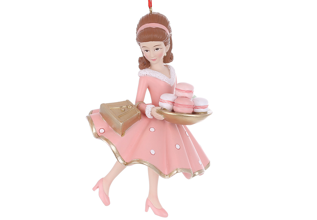 Декоративна підвісна фігурка Дівчина з макарунсами 10*9.5*15см, колір - рожевий