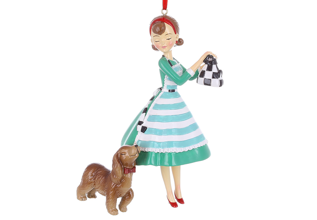 Декоративна підвісна фігурка Дівчина зі спанієлем 9.5*6.5*14.5см, колір - зелений