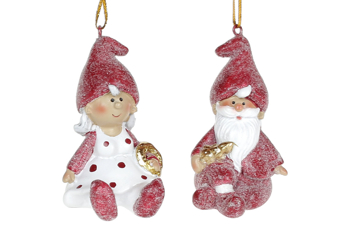 Декоративна підвісна фігурка Гномики, 6.5см, 2 дизайни, колір - бордо з білим