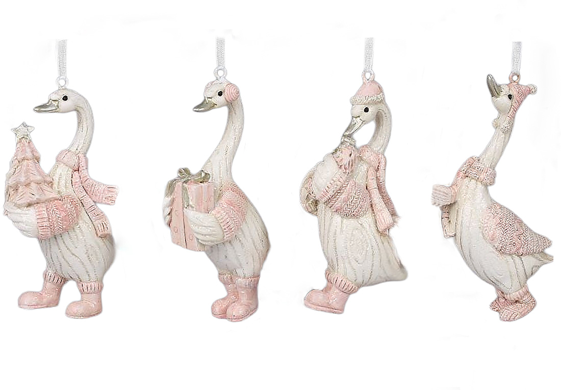 Декоративна підвісна фігурка Гусак Різдвяний, 4 дизайни, 11.5см, колір - персиково-рожевий