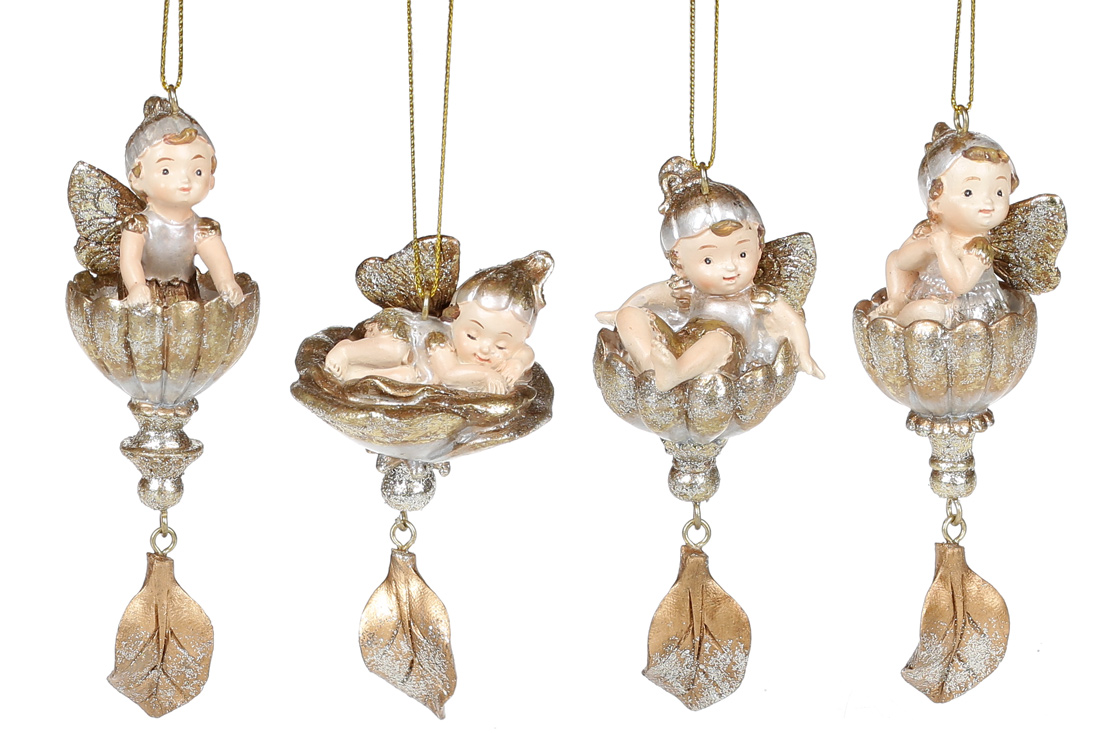 Декоративна підвісна фігурка Лісова фея в квітці, 9.7-12.3см, 4 дизайни, колір - шампань із золотом