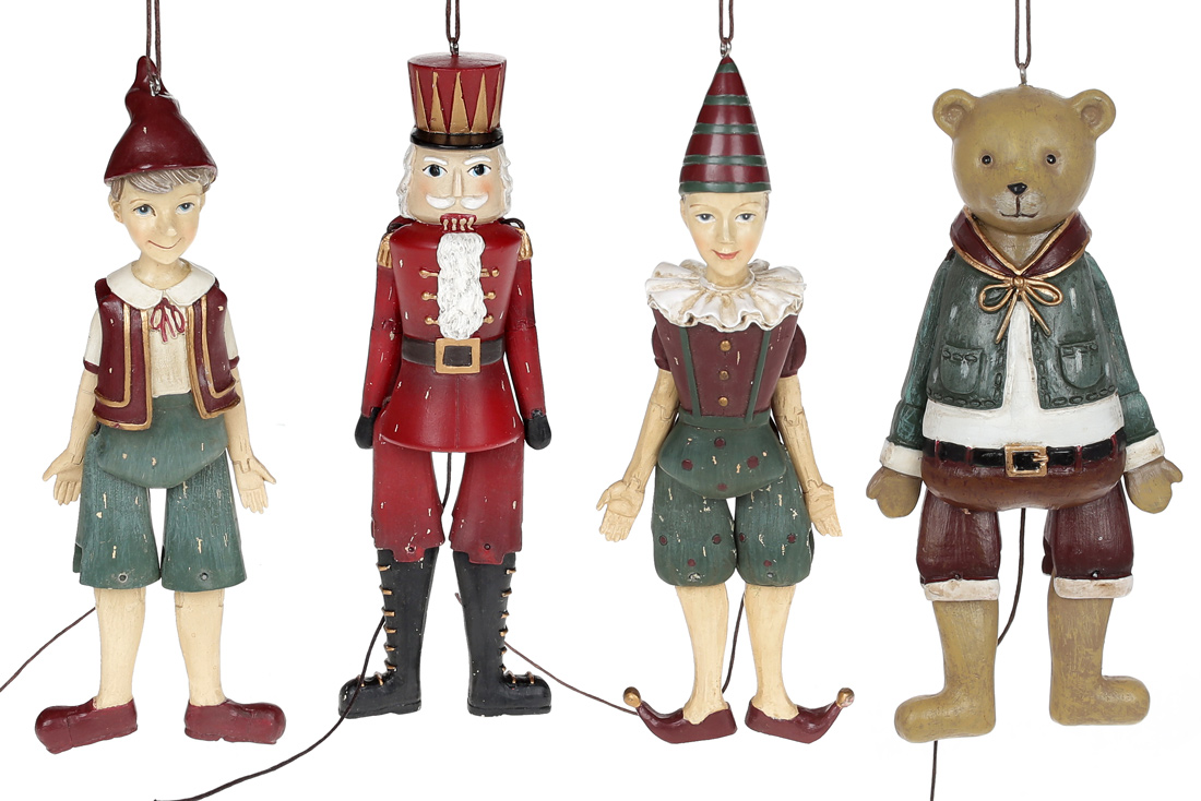 Декоративна підвісна фігурка Маріонетки, 19см, 4 дизайни, колір - бордо із зеленим