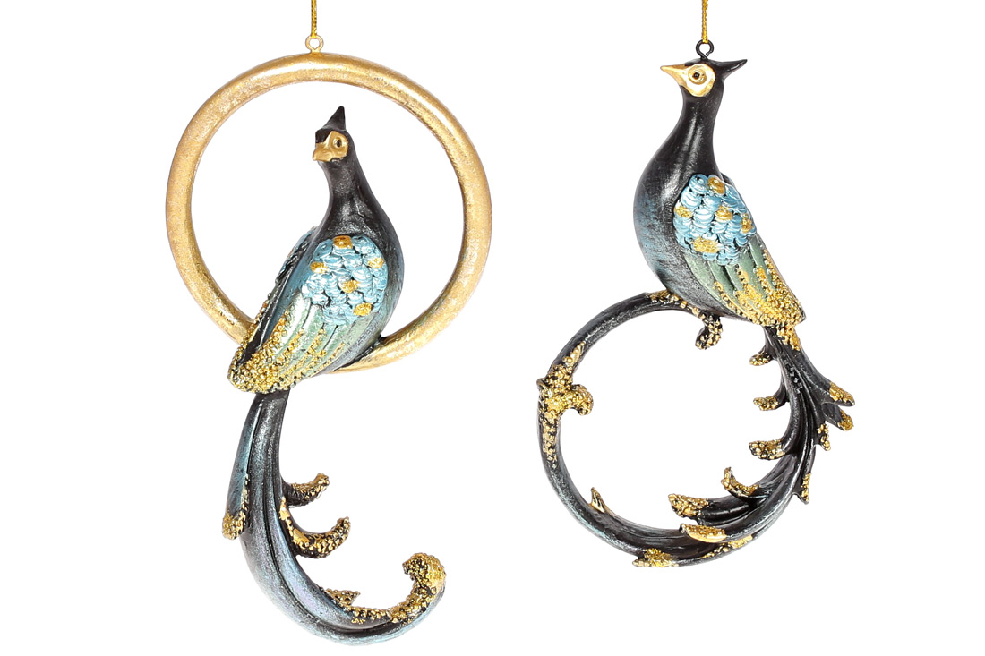 Декоративна підвісна фігурка Павич, 17см, 2 дизайни, колір - темно-синій із золотом