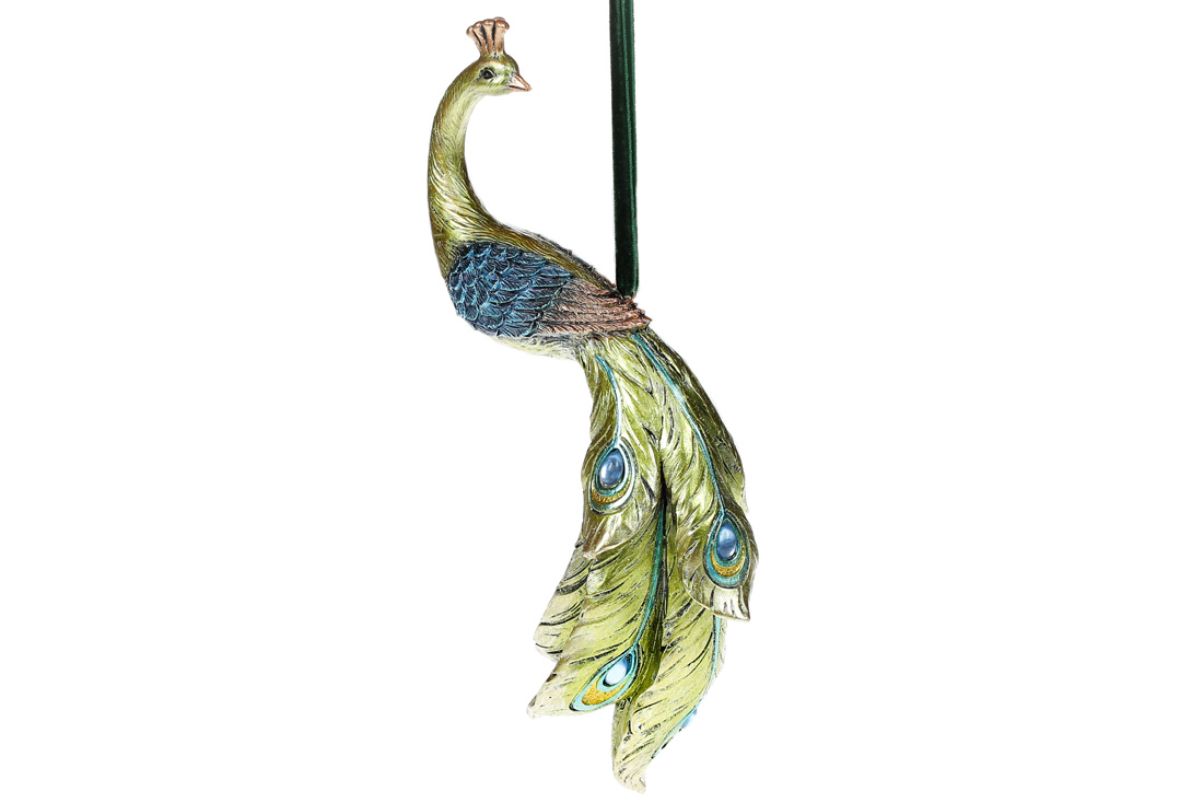 Декоративна підвісна фігурка Павич, 22см, колір - яскраво-зелений з синім