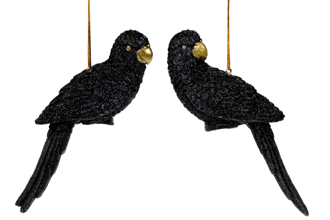 Декоративна підвісна фігурка Папуга, 15.5см, 2 дизайни, колір - чорний з гліттером