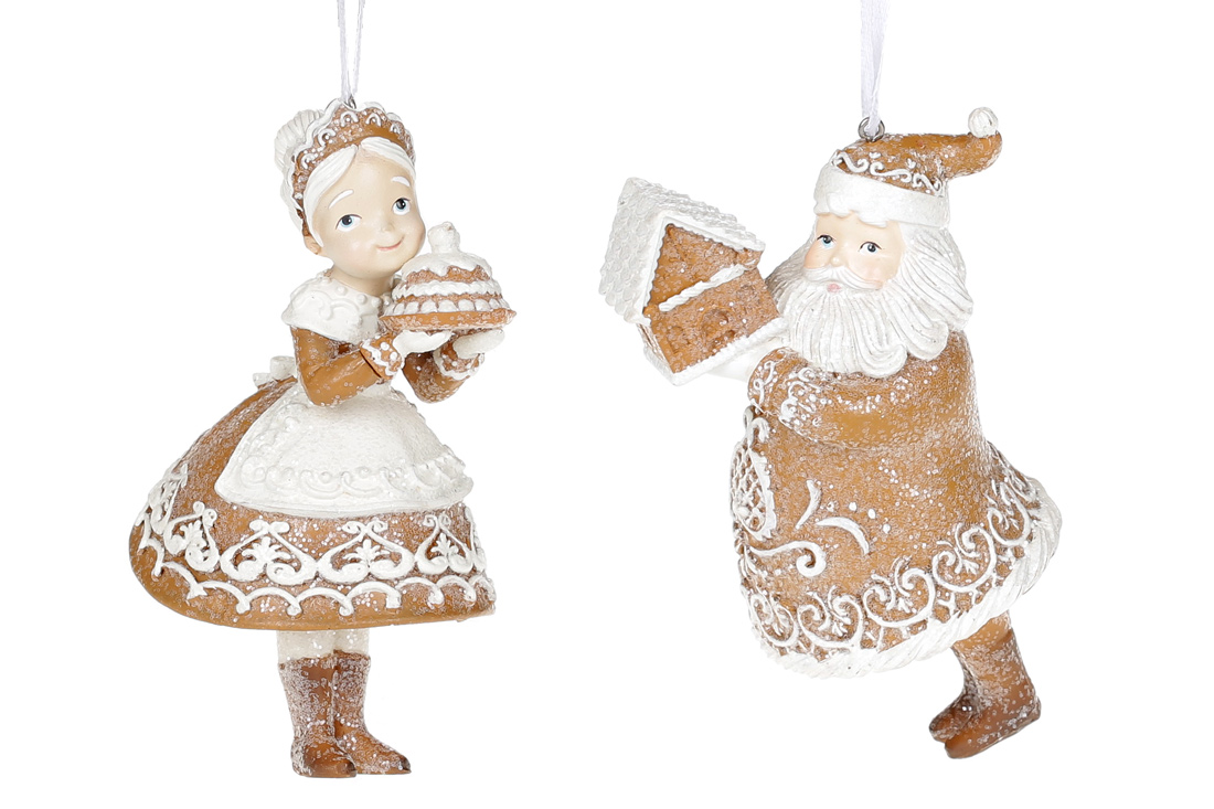 Декоративна підвісна фігурка Пряниковий Санта Клаус і Місіс Клаус, 13.5см, 2 дизайни