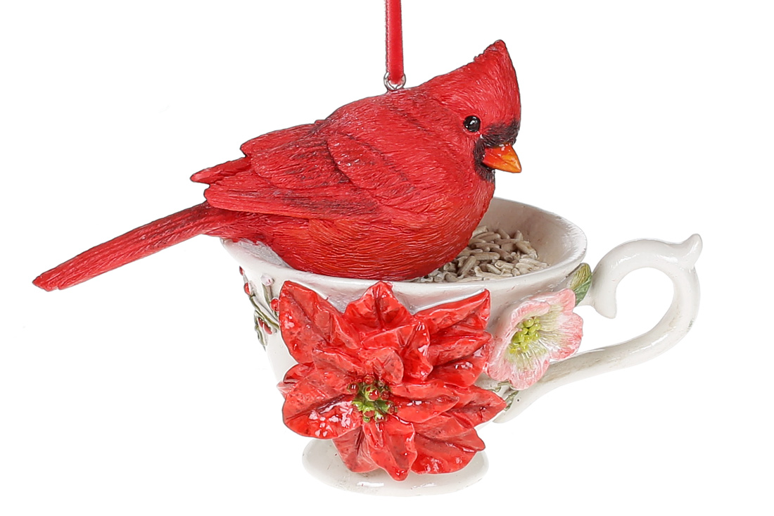 Декоративна підвісна фігурка Птах Кардинал, 9см, колір - червоний