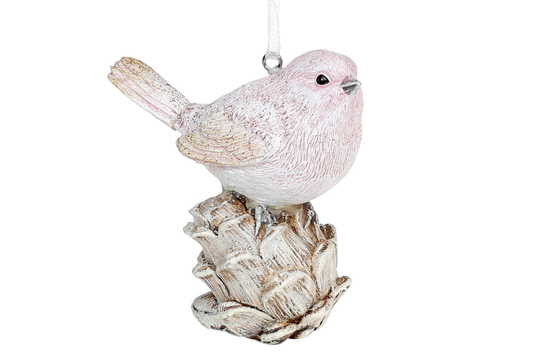 Декоративна підвісна фігурка Пташка на шишці, 9см, колір - бежево-рожевий