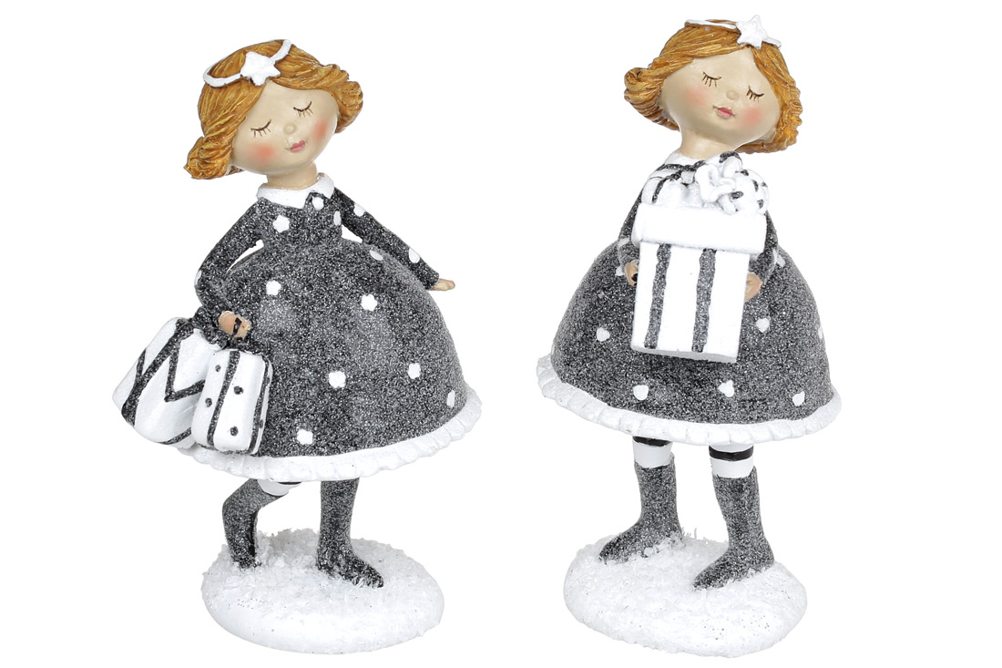 Декоративна підвісна фігурка Дитина з подарунками, 15.5см, 2 дизайни, колір - графіт