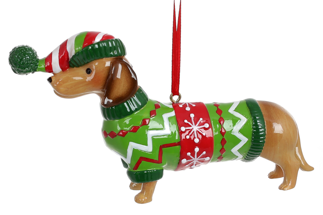 Декоративна підвісна фігурка Такса у светрі 12.8см