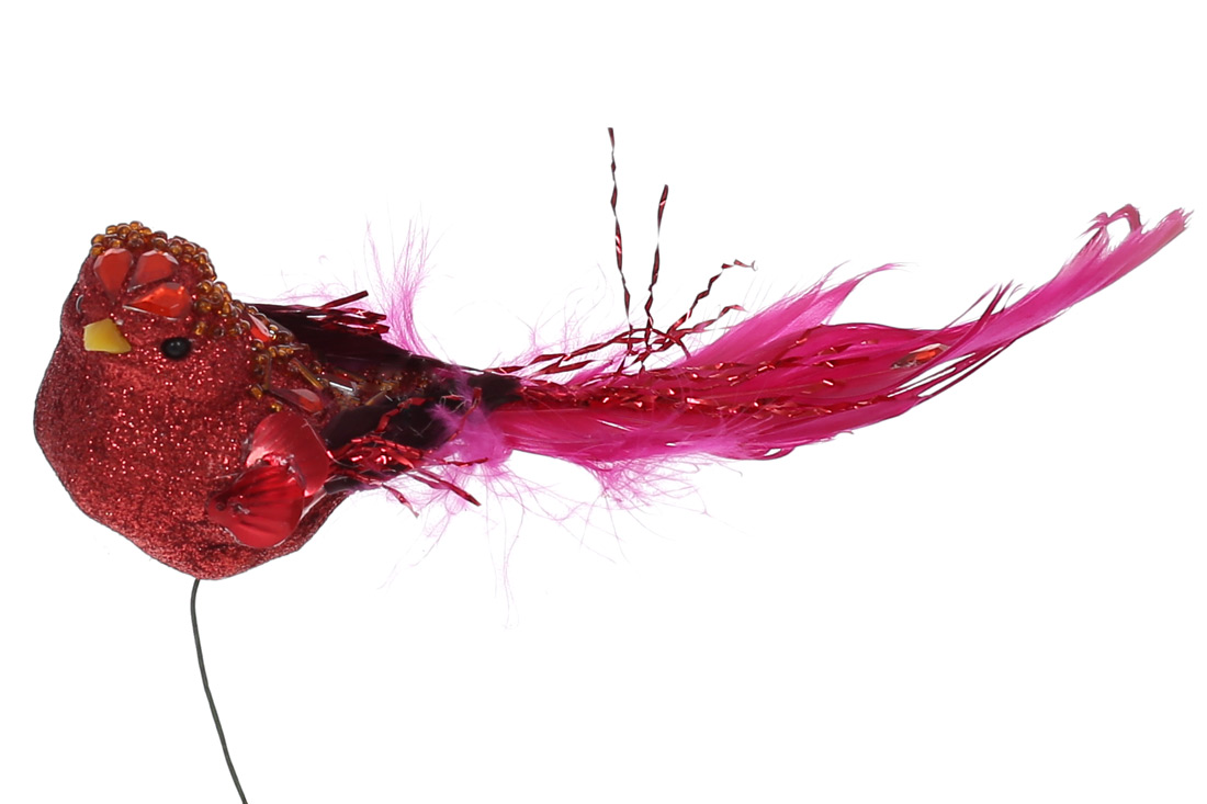 Декоративний птах 18см, колір - червоний