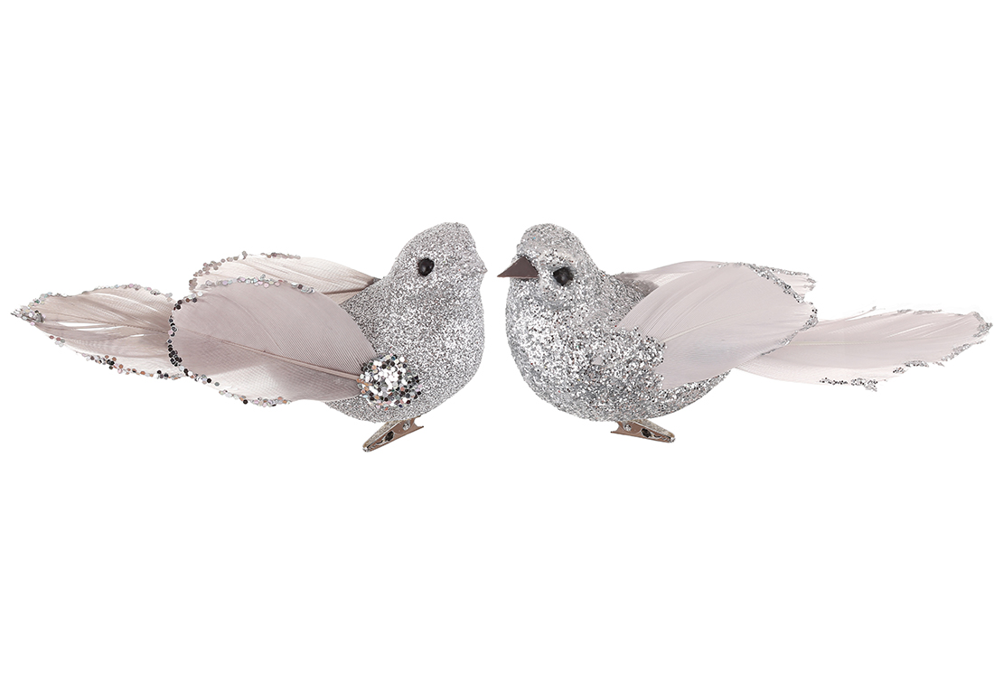 Декоративний птах на кліпсі 10см, 2 дизайни, колір - сріблясто-сірий