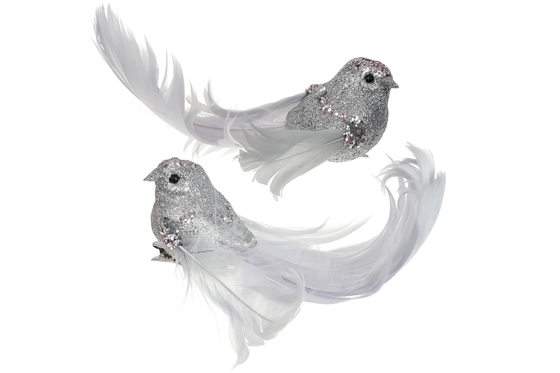 Декоративний птах на кліпсі 12.5см, 2 дизайни, колір - срібло
