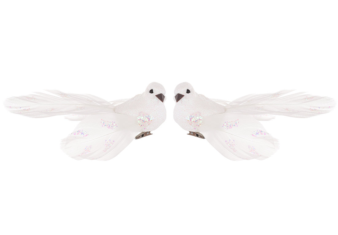 Декоративний птах на кліпсі 12см, 2 дизайни, колір - білий