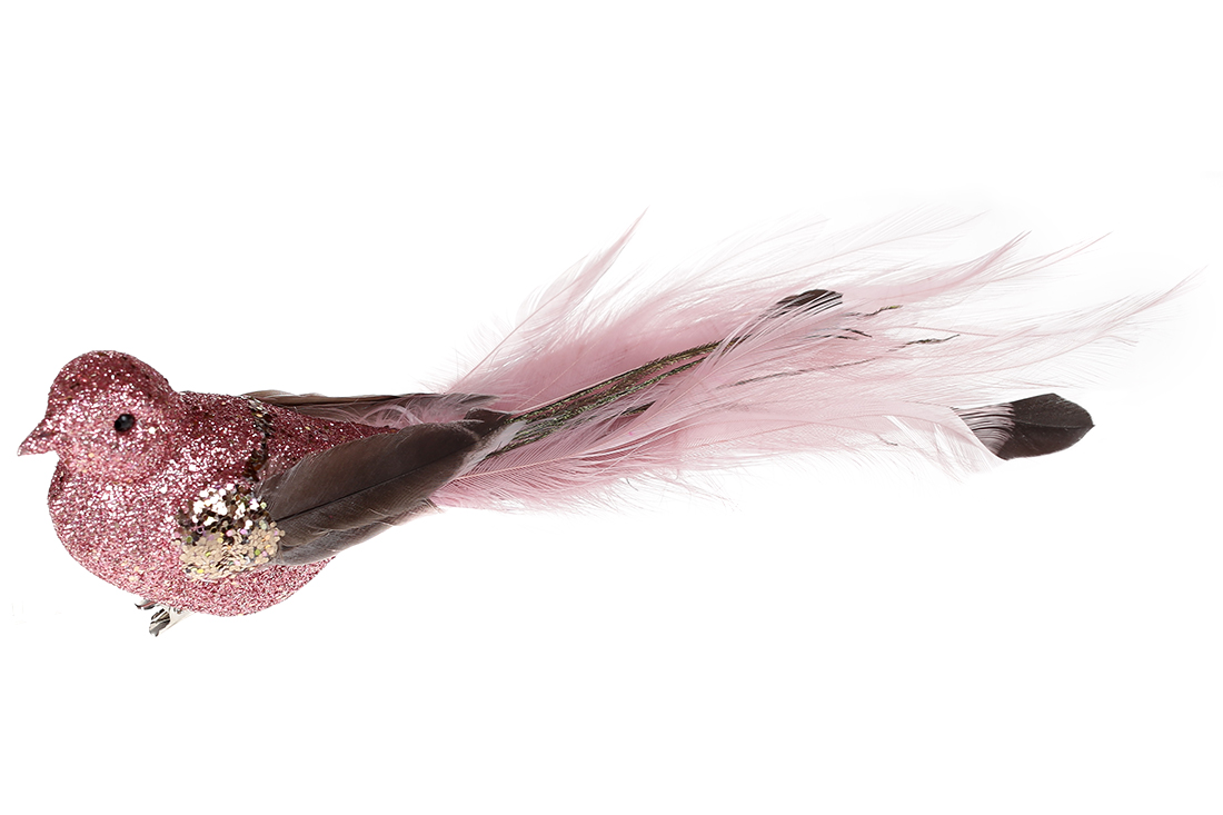 Декоративний птах на кліпсі 20см, колір - темно-рожевий