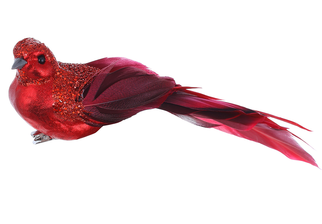 Декоративний птах на кліпсі 21см, колір - червоний