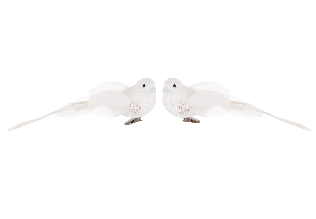Декоративний птах на кліпсі 22см, 2 дизайни, колір - білий