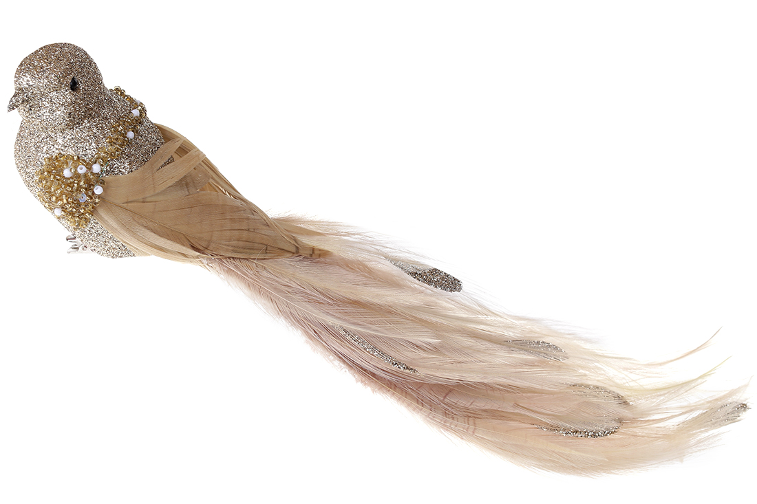 Декоративний птах на кліпсі 29см, колір - крем-шампань