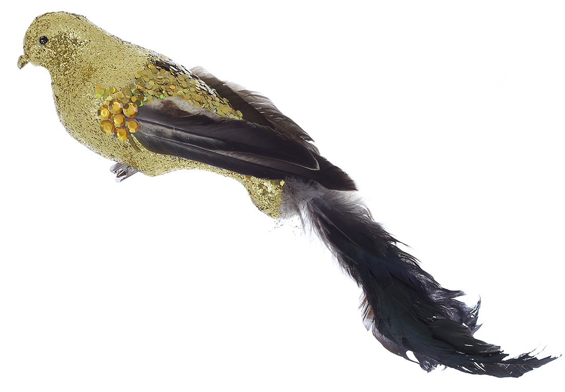 Декоративний птах на кліпсі 35см, колір - золото з чорним