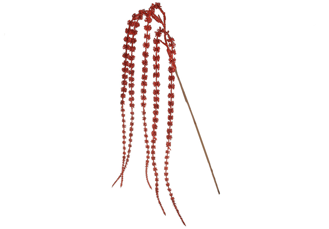 Декоративна спадаюча гілка в глітері 83см, колір - червоний