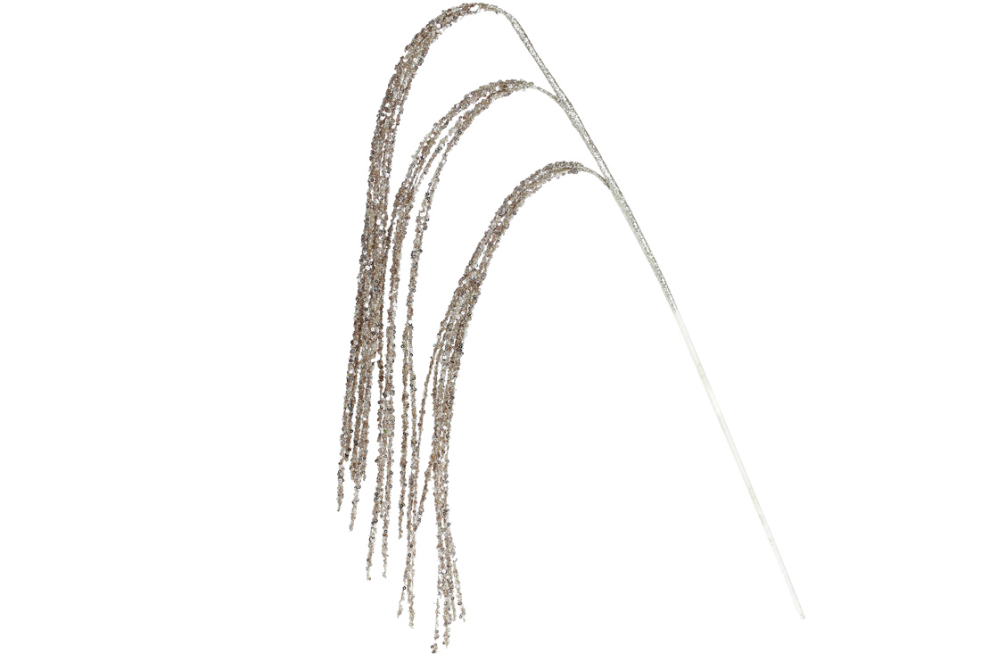 Декоративна спадаюча гілка в гліттері 97см, колір - шампань