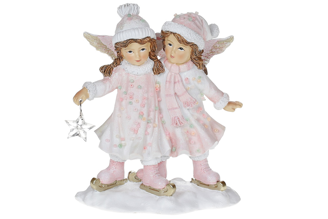Декоративна статуетка Янголи на ковзанах, 11.5см, колір - біло-рожевий