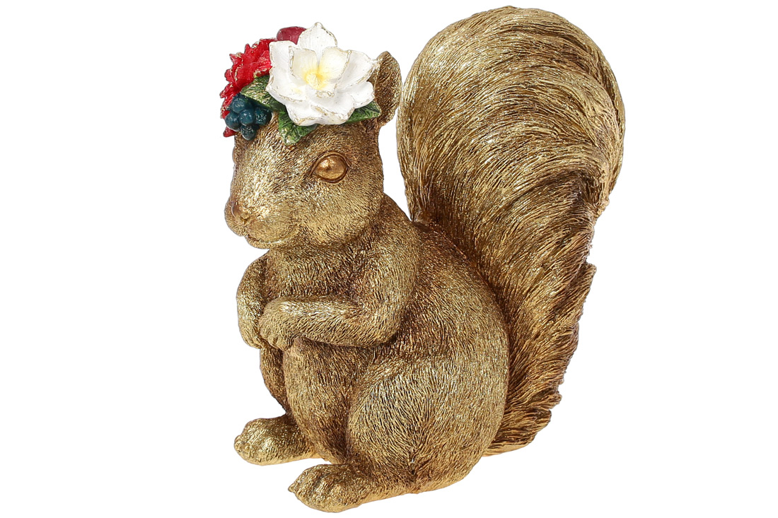 Декоративна статуетка Білка з квітами 18 см, колір - золото