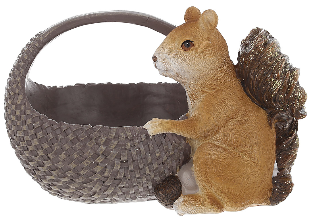 Декоративна статуетка Білка з кошиком, 19.5см, колір - рудий з коричневим
