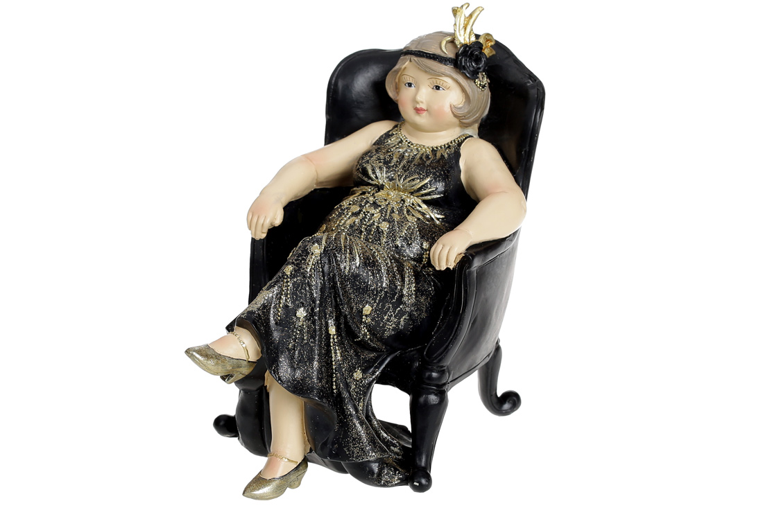 Декоративна статуетка Дама у кріслі, 17.5см, колір - чорний із золотом