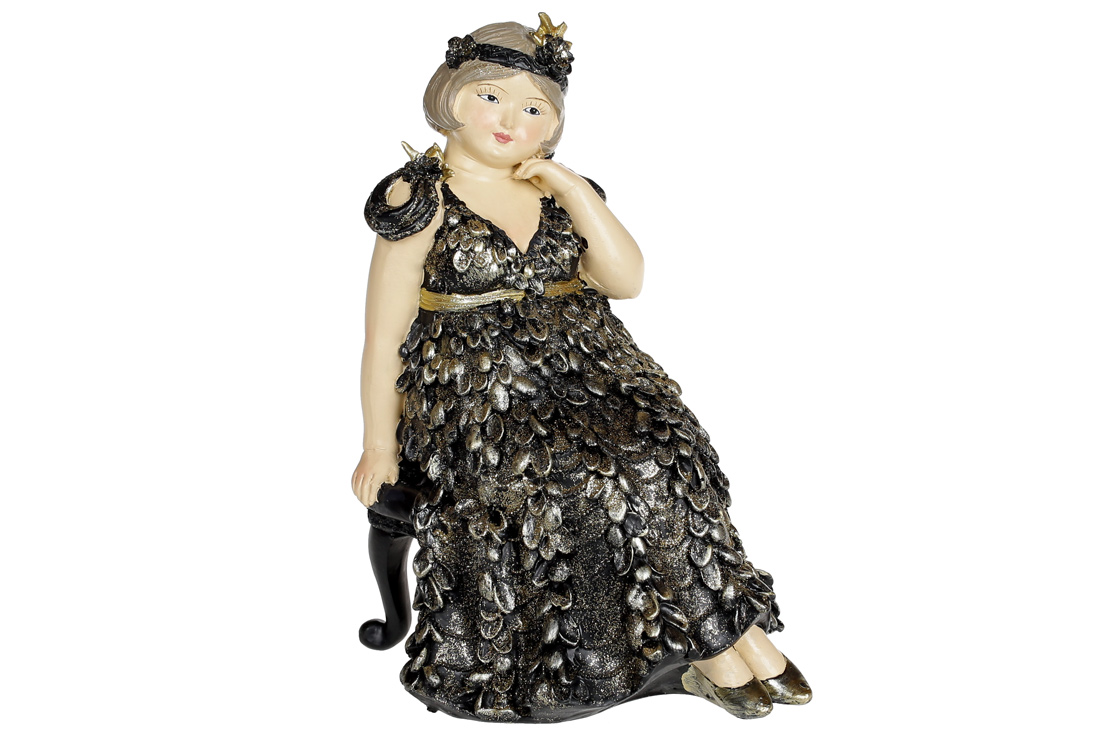 Декоративна статуетка Дама у мріях, 17.5см, колір - чорний із золотом