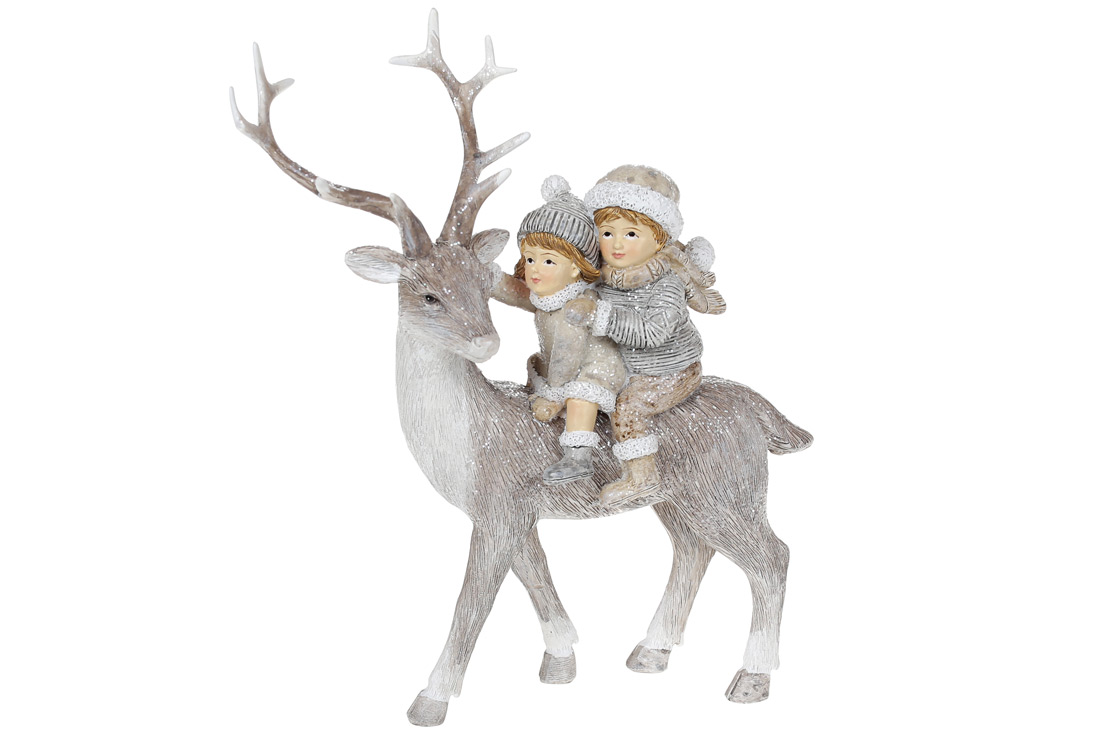 Декоративна статуетка Діти на Олені, 20см, колір - бежево-сірий