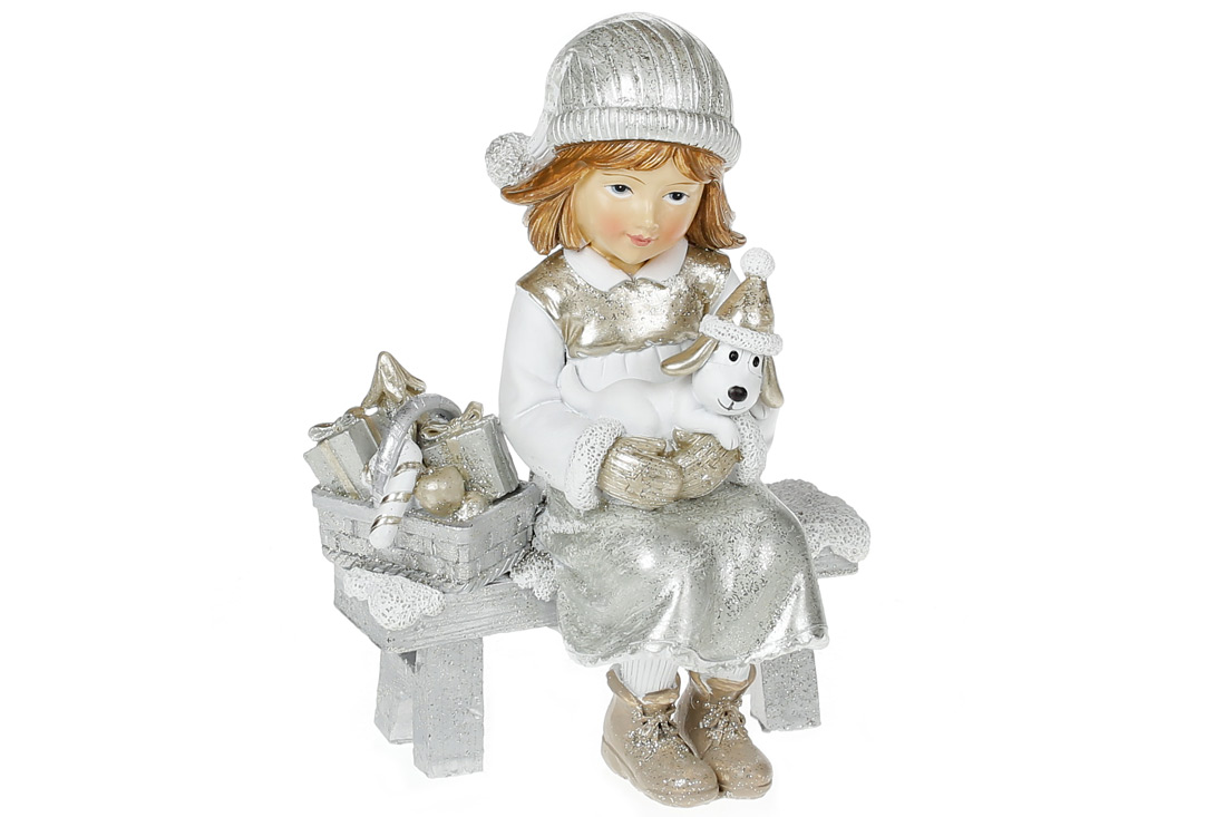 Декоративна статуетка Дівчинка на лавці, 14см, колір - шампань