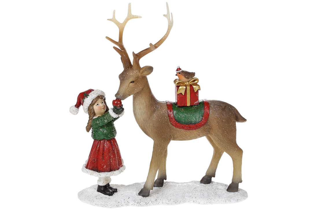 Декоративна статуетка Дівчинка з оленем, 21см, колір - червоний з коричневим