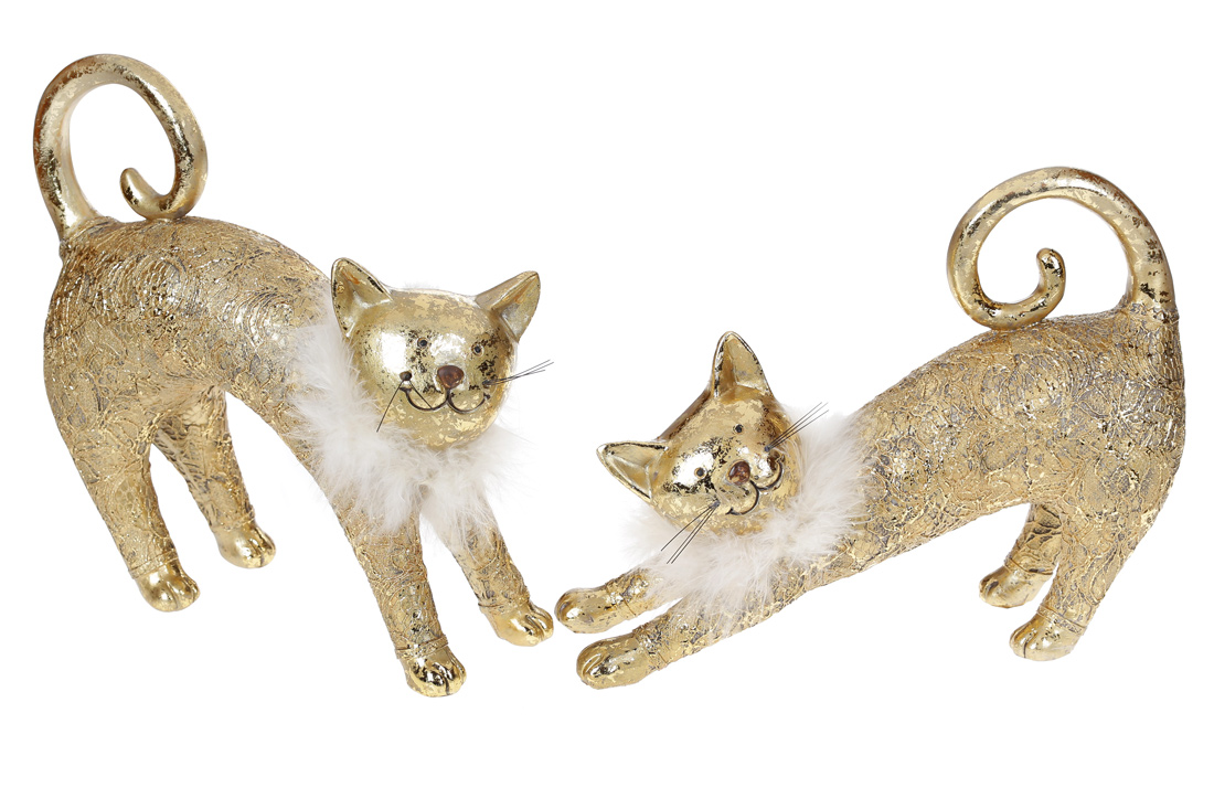 Декоративна статуетка Кішка, 24см, 2 дизайни, колір - золотий