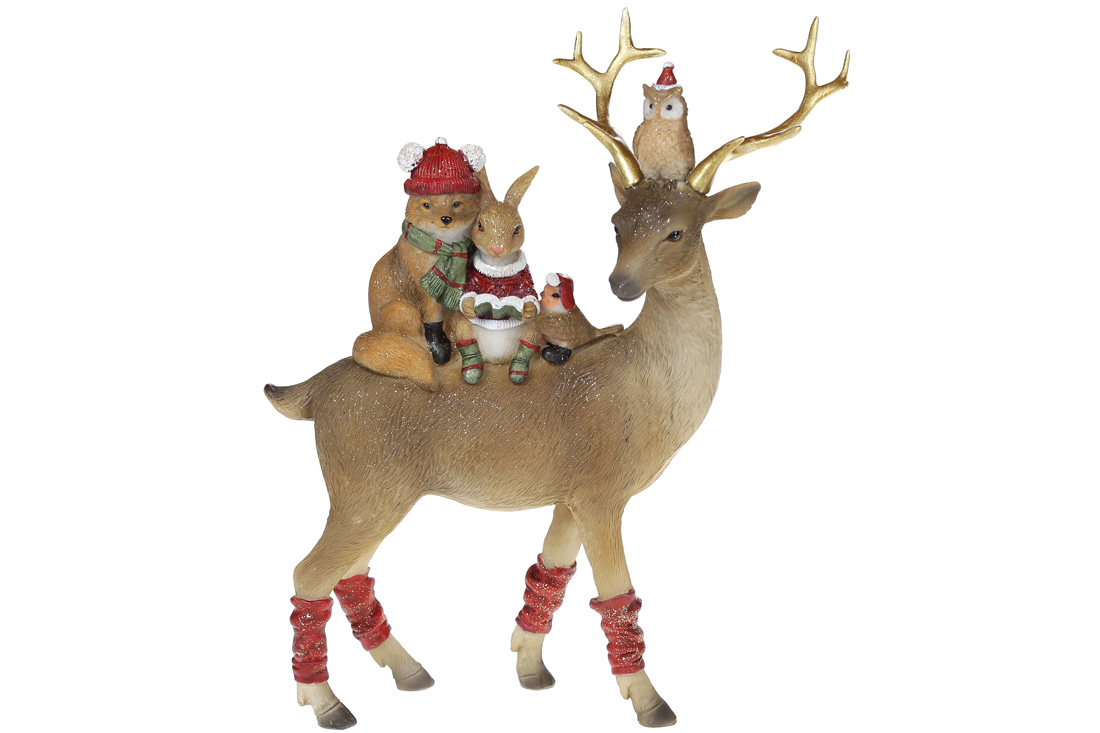 Декоративна статуетка Лісові жителі на олені, 25см, колір - світло-коричневий