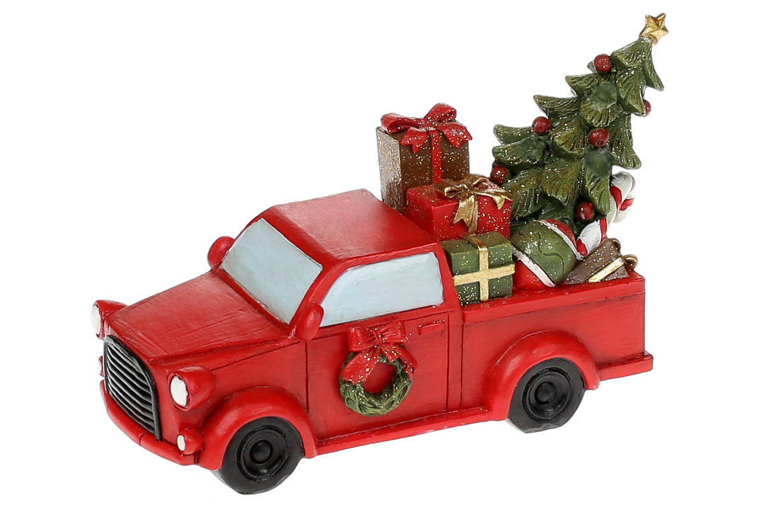 Декоративна статуетка Машинка з новорічною ялинкою, 15см, колір - червоний