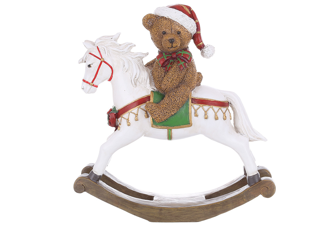 Декоративна статуетка Ведмедик на коні, 25см, колір - червоний з білим