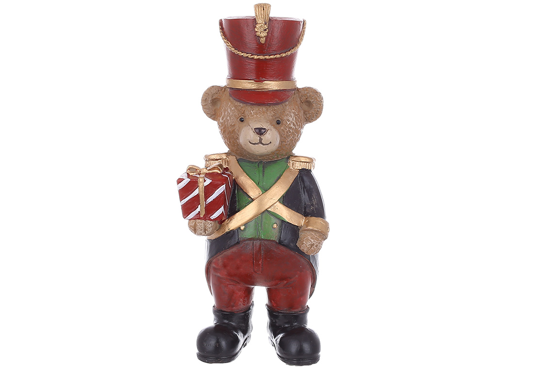 Декоративна статуетка Ведмедик-солдадик 16.5см, колір - червоний із зеленим