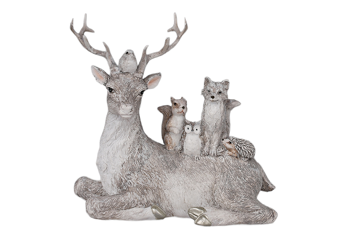 Декоративна статуетка Олень з лісовими друзями 15*13.5см, колір - сіро-бежевий