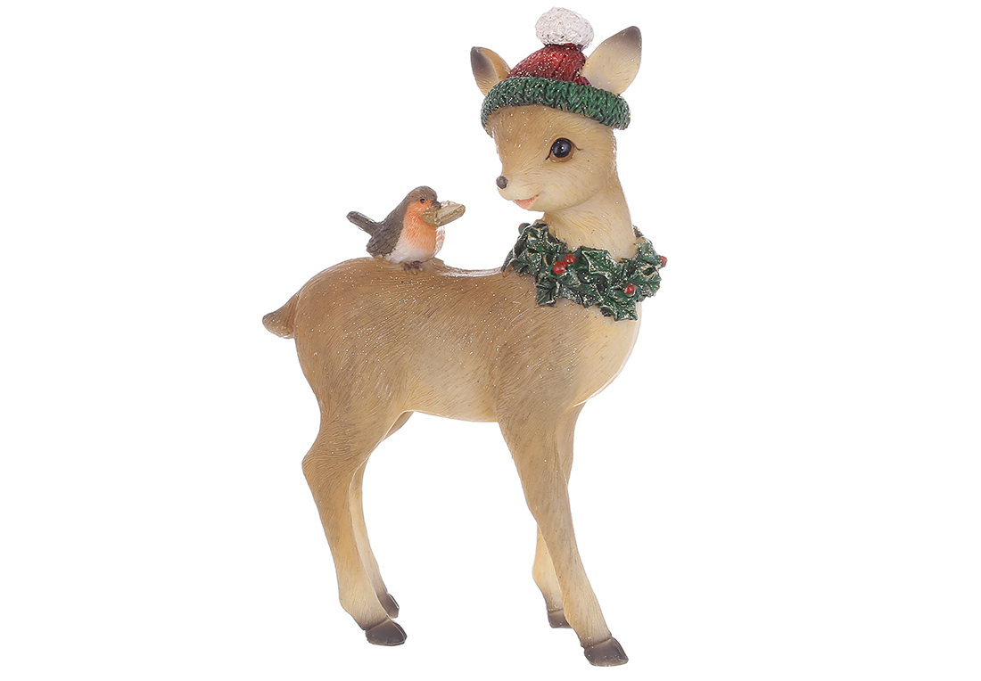 Декоративна статуетка Оленя з пташкою 10*4*15.5см, колір - коричневий