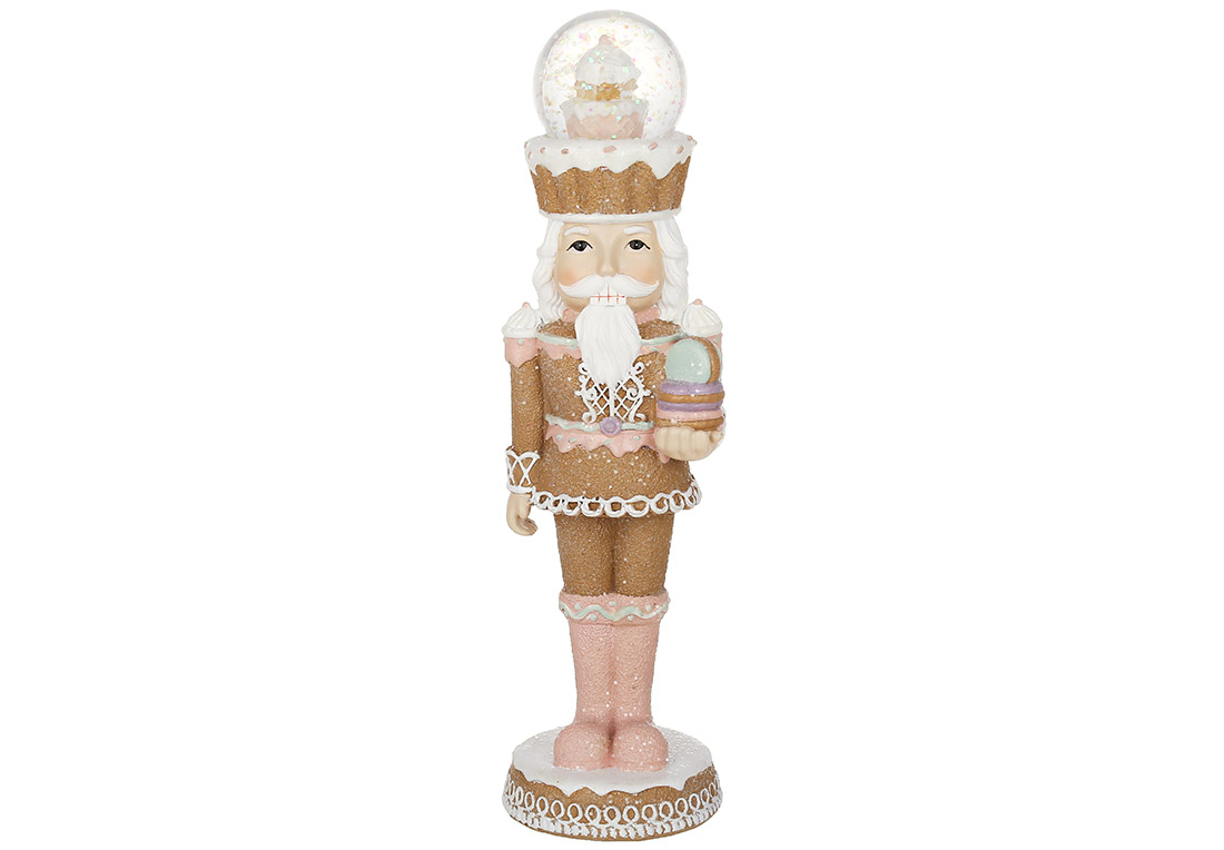 Декоративна статуетка Пряниковий лускунчик з водяною кулею, 24см, колір - імбирний з рожевим