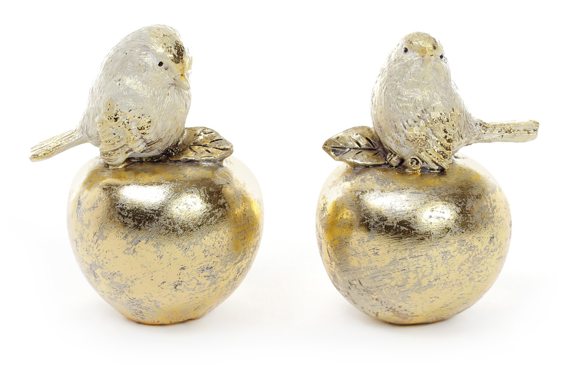 Декоративна статуетка Пташка на яблуку 9.5см, 2 дизайни, колір - золото