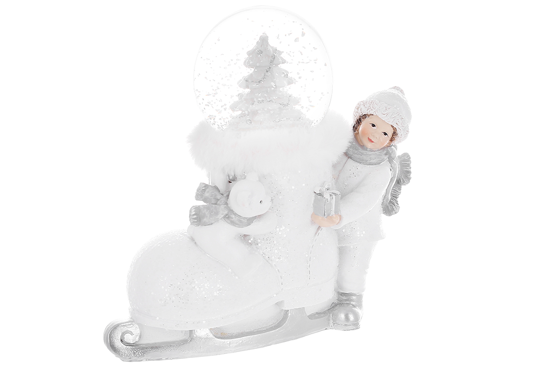 Декоративна статуетка з водяною кулею Хлопчик з ковзаном та ведмедиком 16х15см