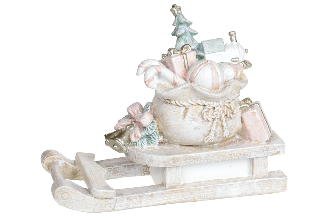 Декоративна статуетка Сани з подарунками, 20.5см, колір - рожево-бежевий