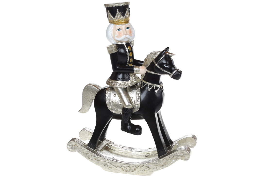 Декоративна статуетка Лускунчик на коні, 25см, колір - чорний з шампанню