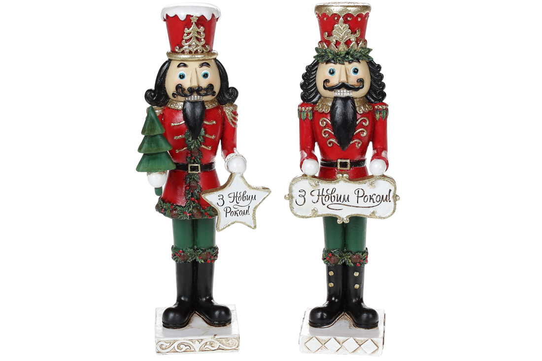 Декоративна статуетка Лускунчик "З Новим Роком", 22см, 2 дизайни, колір - червоний із зеленим