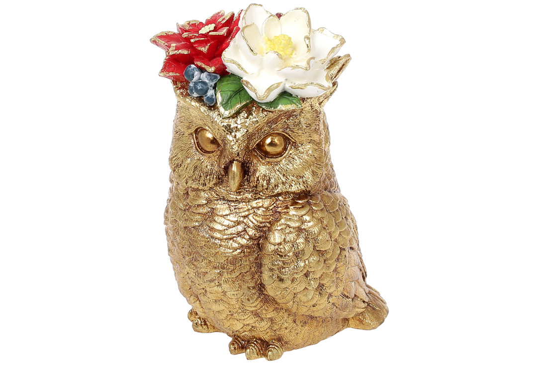 Декоративна статуетка Сова з квітами 18 см, колір - золото