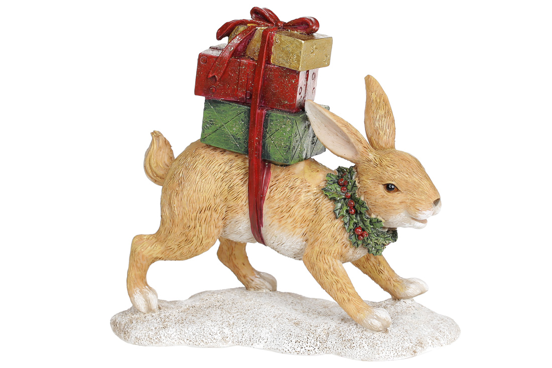 Декоративна статуетка Заєць з подарунками, 19.5см, колір - світло-коричневий