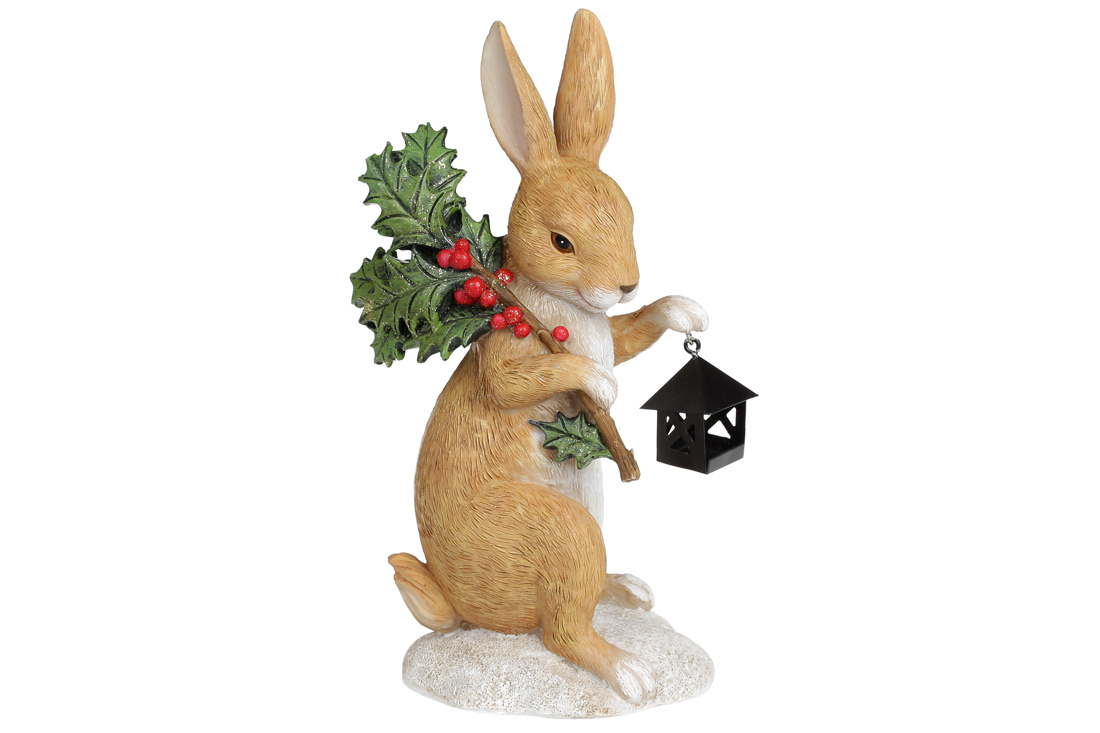 Декоративна статуетка Зайчика з ліхтарем, 21см, колір - світло-коричневий